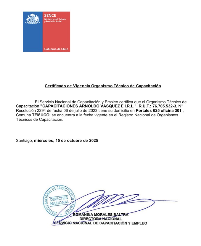 Somos un Organismo Técnico de Capacitación (OTEC), institución autorizada por SENCE para realizar servicios de capacitación.